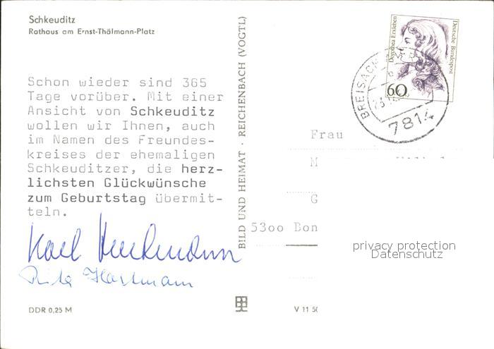 72060623 alte Postkarte Schkeuditz Rathaus am Ernst Thaelmann Platz postalisch gelaufen Erhaltung siehe scans KatCode: 11110014374315