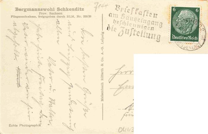 73975265 alte Postkarte Schkeuditz Sachsen Bergmannswohl postalisch gelaufen Fliegeraufnahme Erhaltung siehe scans [FriedD77] KatCode: 11110014374315
