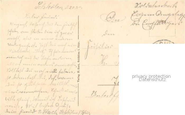 43492099 alte Postkarte Schk?len Kirche postalisch gelaufen Feldpost – Stempel Erhaltung siehe scans [LiesaD40] KatCode:
