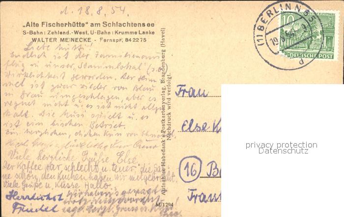 72189079 alte Postkarte Schlachtensee STEGLITZ-ZEHLENDORF BERLIN alte Fischerhuette postalisch gelaufen Erhaltung siehe scans KatCode: 11110011000000