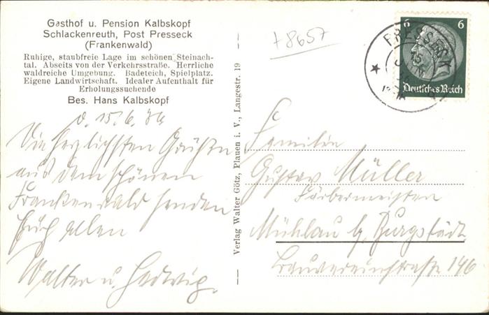 40948709 Schlackenreuth Gasthof Pension Kalbskopf KatCode 11110009477148