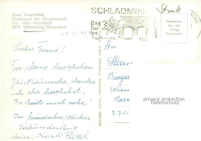 74155984 alte Postkarte Schladming Obersteiermark AT Haus Tauernblick Speisesaal Restaurant Hallenbad postalisch gelaufen Erhaltung siehe scans [WerneD78] KatCode: 11390222061242
