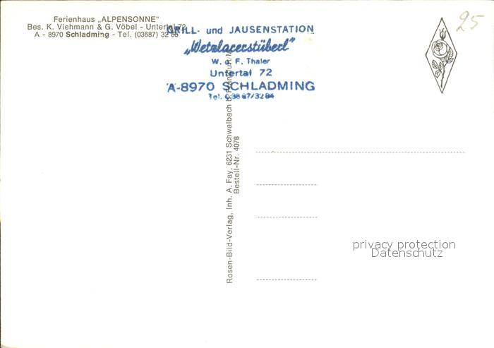 72270802 Schladming Obersteiermark Ferienhaus Haus Alpensonne mit Wetzlarer Stuebl postalisch nicht gelaufen Erhaltung siehe scans KatCode: 11390222061242
