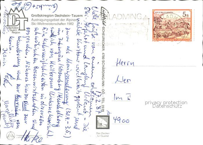 72541129 alte Postkarte Schladming Obersteiermark Grossskiregion Dachstein Tauern Pistenkarte postalisch gelaufen Erhaltung siehe scans [AndreD76 kt119box] KatCode: 11390222061242