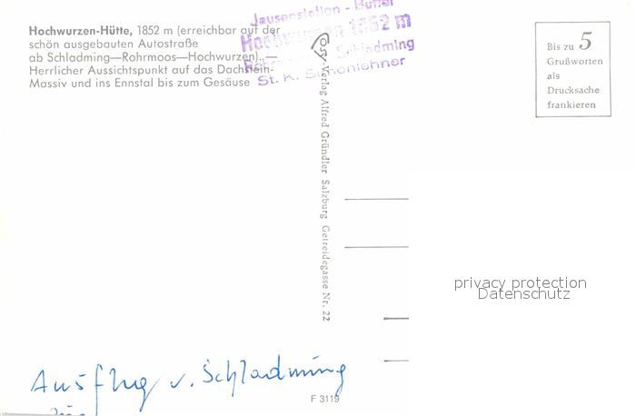 72771084 Schladming Obersteiermark Hochwurzen Huette Dachstein Massiv postalisch nicht gelaufen Erhaltung siehe scans [WerneD78] KatCode: 11390222061242