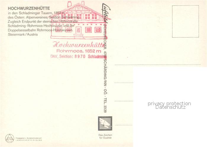 73270267 Schladming Obersteiermark Hochwurzenhuette postalisch nicht gelaufen Erhaltung siehe scans [PaolaD17] KatCode: 11390222061242