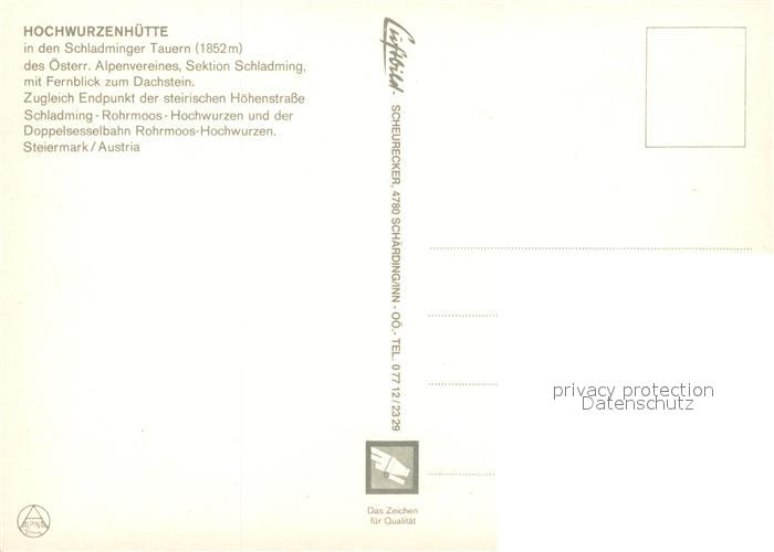 13221845 Schladming Obersteiermark Hochwurzenhuette Berggaststaette Schladminger Tauern postalisch nicht gelaufen Erhaltung siehe scans [FriedD77] KatCode: 11390222061242