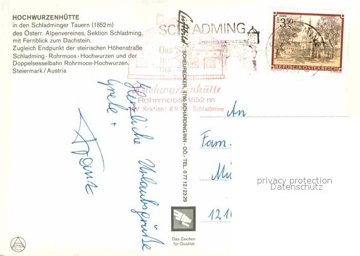 72699876 alte Postkarte Schladming Obersteiermark Hochwurzenhuette Schladminger Tauern postalisch gelaufen Erhaltung siehe scans [FriedD77] KatCode: 11390222061242