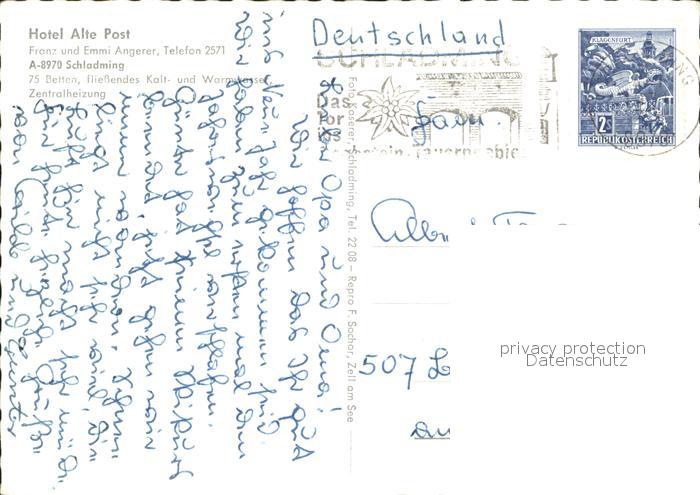 72052646 alte Postkarte Schladming Obersteiermark Hotel Alte Post postalisch gelaufen Erhaltung siehe scans KatCode: 11390222061242