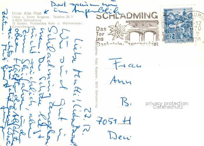 72827571 alte Postkarte Schladming Obersteiermark Hotel Alte Post postalisch gelaufen Erhaltung siehe scans [NatalD47] KatCode: 11390222061242