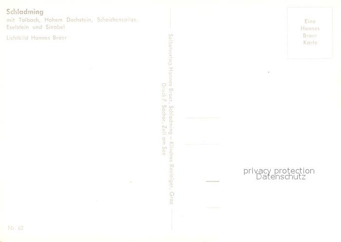 73628937 Schladming Obersteiermark mit Talbach Hohem Dachstein Scheichenspitze Eselstein und Sinabel postalisch nicht gelaufen Erhaltung siehe scans [WerneD78] KatCode: 11390222061242