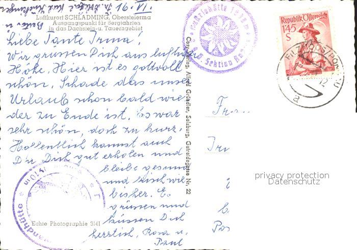 72300053 alte Postkarte Schladming Obersteiermark Obersteierma postalisch gelaufen Erhaltung siehe scans KatCode: 11390222061242