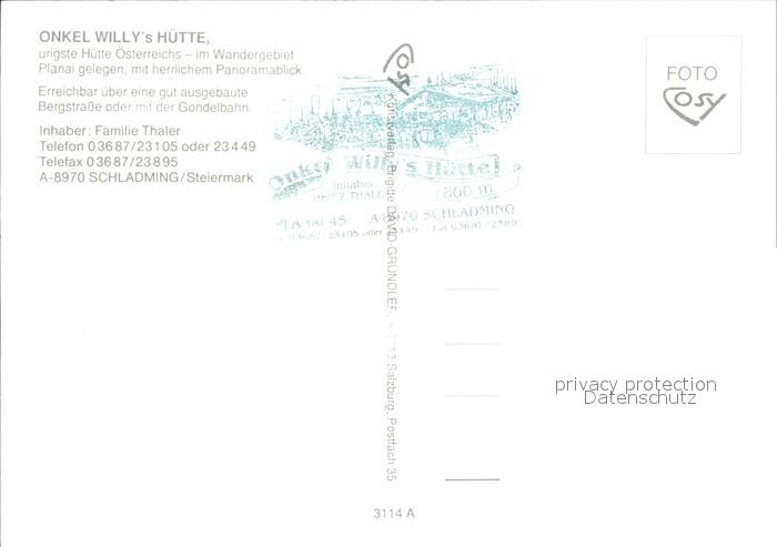 72457497 Schladming Obersteiermark Onkel Willy’s Huette Planai postalisch nicht gelaufen Erhaltung siehe scans KatCode: 11390222061242