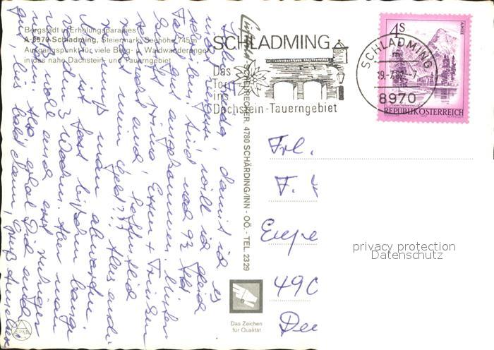 72603412 alte Postkarte Schladming Obersteiermark Panorama Bergstadt Alpenblick postalisch gelaufen Erhaltung siehe scans [FriedD77] KatCode: 11390222061242