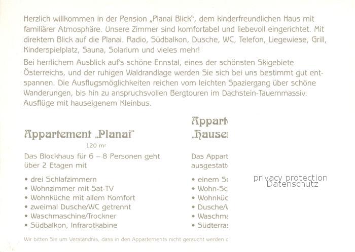 73210254 Schladming Obersteiermark Pension Planaiblick Appartementhaeuser postalisch nicht gelaufen Werbekarte (keine Postkarte) Erhaltung siehe scans [FriedD77] KatCode: 11390222061242
