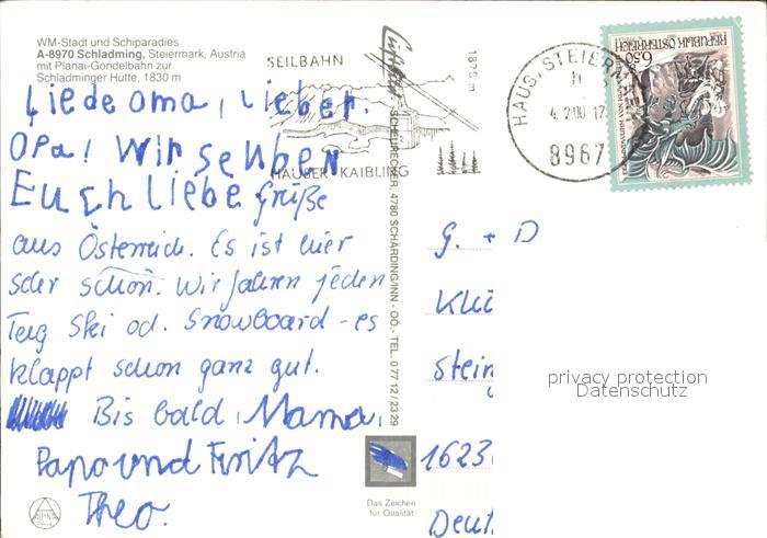 72073357 alte Postkarte Schladming Obersteiermark Planai Gondelbahn Schladminger Huette postalisch gelaufen Erhaltung siehe scans KatCode: 11390222061242
