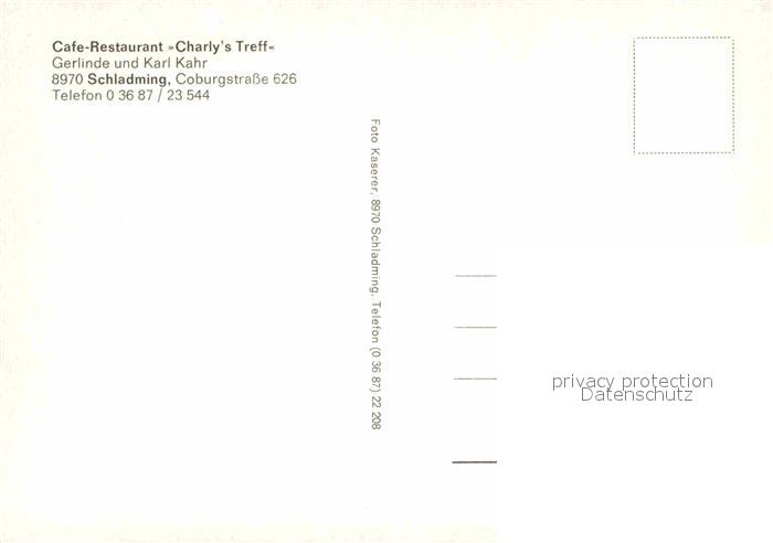 72849409 Schladming Obersteiermark Restaurant Charlys Treff postalisch nicht gelaufen Erhaltung siehe scans [KathaD81] KatCode: 11390222061242