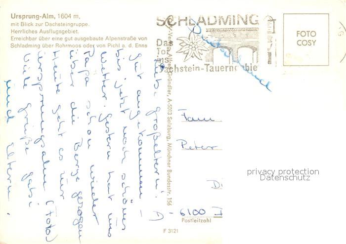 73056287 Schladming Obersteiermark Ursprung Alm mit Dachsteingruppe postalisch nicht gelaufen Erhaltung siehe scans [WerneD78] KatCode: 11390222061242