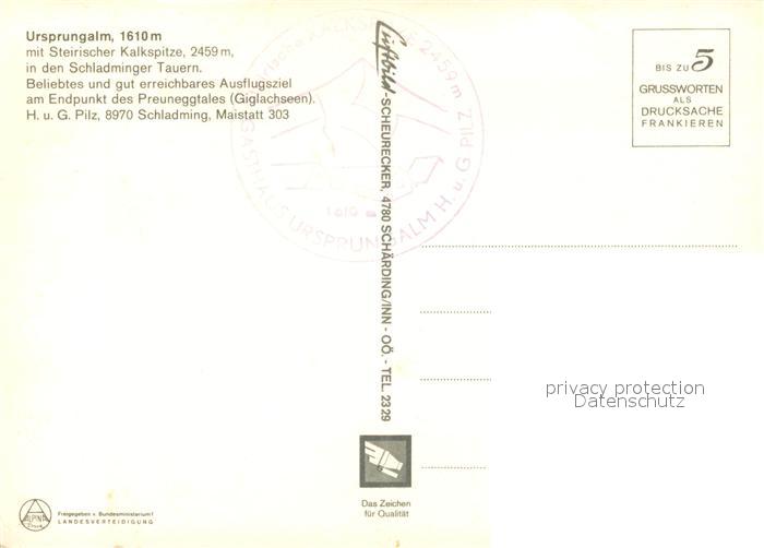 73224051 Schladming Obersteiermark Ursprungalm Preuneggtal Steirische Kalkspitze Schladminger Tauern Fliegeraufnahme postalisch nicht gelaufen Erhaltung siehe scans [FriedD77] KatCode: 11390222061242
