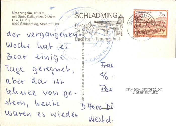 72438179 alte Postkarte Schladming Obersteiermark Ursprungalm postalisch gelaufen Erhaltung siehe scans KatCode: 11390222061242