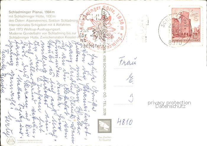 72417533 alte Postkarte Schladmingerhuette Planai Fliegeraufnahme postalisch gelaufen Erhaltung siehe scans KatCode: 11390222061242
