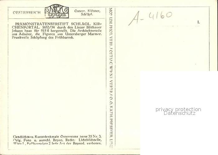 71957909 Schlaegl Praemonstratenserstift Schlaegl Kirchenportal postalisch nicht gelaufen Erhaltung siehe scans KatCode: 11390313041339