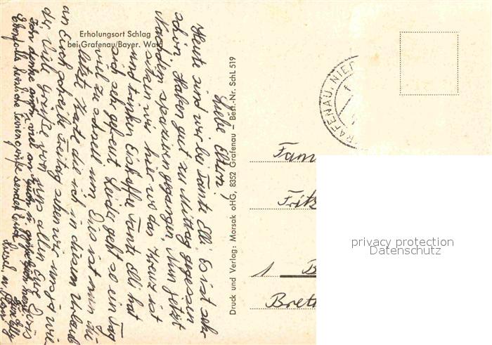 72907243 alte Postkarte Schlag Grafenau Teilansicht postalisch gelaufen Erhaltung siehe scans [AndreD76] KatCode: 11110009272120