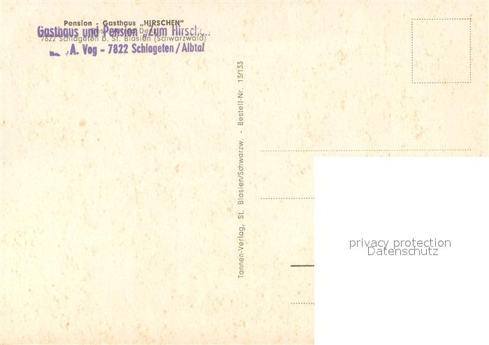 73641980 Schlageten Gasthaus Pension Zum Hirsch postalisch nicht gelaufen Erhaltung siehe scans [WerneD78] KatCode: 11110008337097