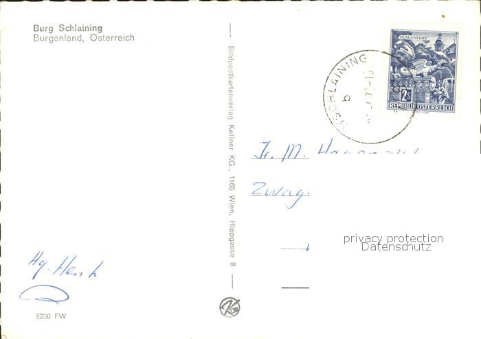 72469952 alte Postkarte Schlaining Burg postalisch gelaufen Erhaltung siehe scans KatCode: 11390