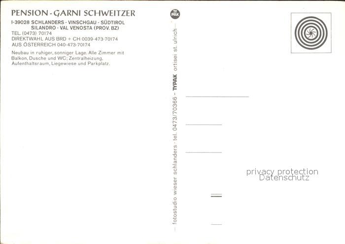 Schlanders Suedtirol Pension Garni Schweizer Panorama postalisch nicht gelaufen Erhaltung siehe scans