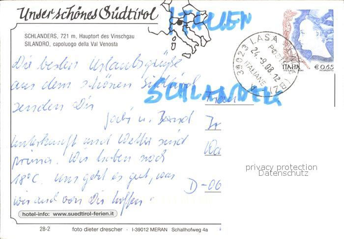 old postcard Schlanders Suedtirol Vinschgau postalisch gelaufen Erhaltung siehe scans