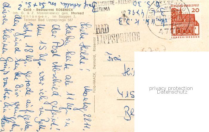 73792890 alte Postkarte Schlangen Lippe Restaurant-Cafe Roseneck Aussenansicht m. Terrasse postalisch gelaufen Erhaltung siehe scans [LiesaD40] KatCode: 11110005766064