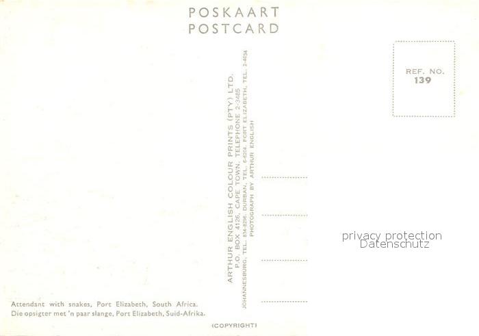 72912759 Schlangen Tiere Attendant with Snakes Port Elizabeth South Africa KatCode 22540000001800