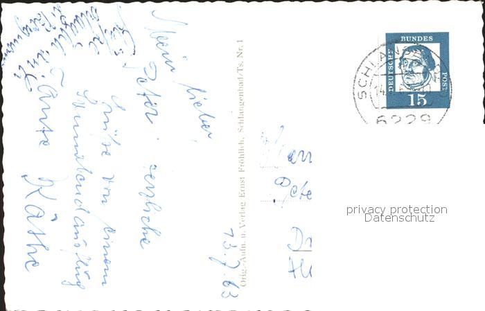 72290247 alte Postkarte Schlangenbad Taunus Blick vom Wilhelmsfelsen Sanatorium Malerwinkel Kurgarten Thermal Schwimmbad Kurhotel postalisch gelaufen Erhaltung siehe scans KatCode: 11110006439014