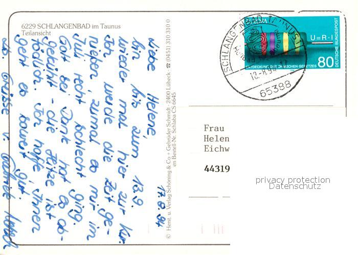 73062406 alte Postkarte Schlangenbad Taunus Fliegeraufnahme postalisch gelaufen Erhaltung siehe scans [KathaD81] KatCode: 11110006439014