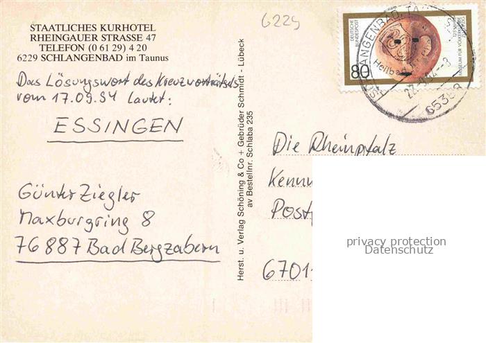 74155010 alte Postkarte Schlangenbad Taunus Hessen Kurhotel Restaurant Festtafel Festsaal postalisch gelaufen Erhaltung siehe scans [FriedD77] KatCode: 11110006439014