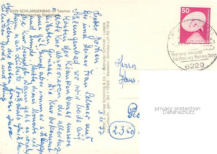 73168482 alte Postkarte Schlangenbad Taunus Hessisches Staatsbad Fliegeraufnahme postalisch gelaufen Erhaltung siehe scans [WerneD78] KatCode: 11110006439014