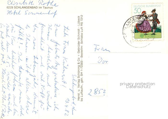 73321719 alte Postkarte Schlangenbad Taunus Hotel Sonnenhof Fliegeraufnahme postalisch gelaufen Erhaltung siehe scans [WerneD78] KatCode: 11110006439014