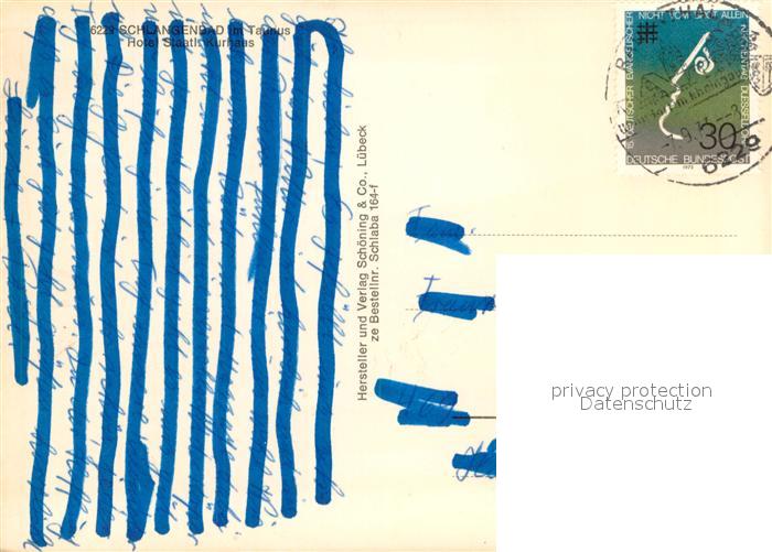 73736402 alte Postkarte Schlangenbad Taunus Hotel Staatl Kurhaus postalisch gelaufen Erhaltung siehe scans [WerneD78] KatCode: 11110006439014