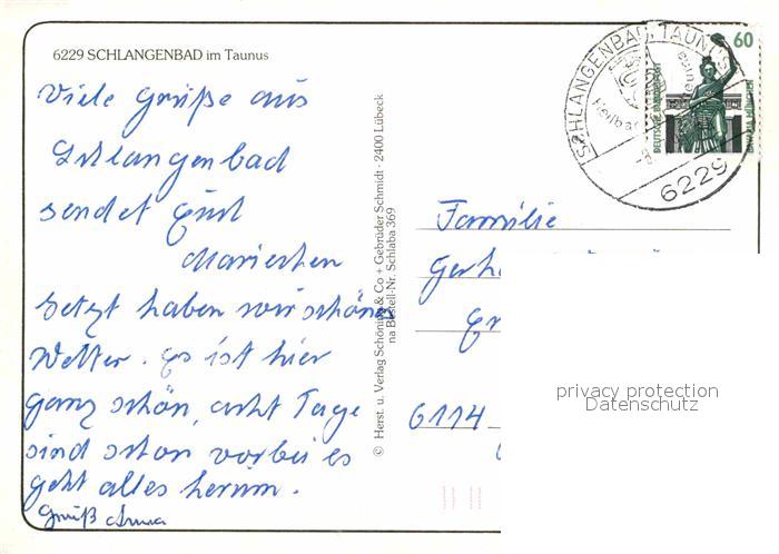 72797147 alte Postkarte Schlangenbad Taunus Klinik Hallenbad postalisch gelaufen Erhaltung siehe scans [LiesaD40] KatCode: 11110006439014