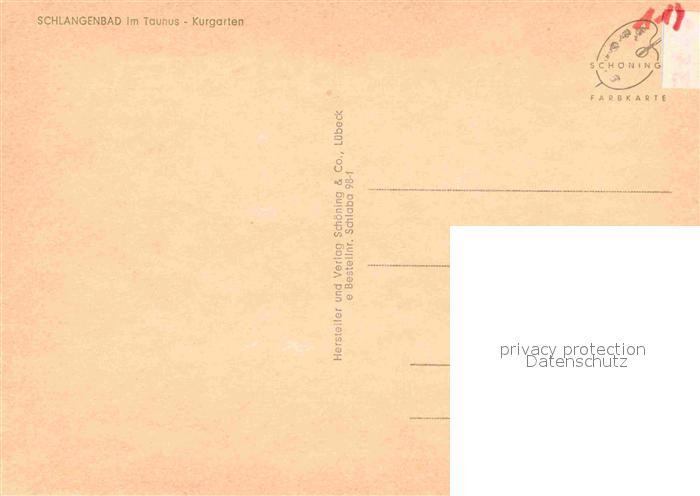 72885802 Schlangenbad Taunus Kurgarten postalisch nicht gelaufen Erhaltung siehe scans [FriedD77] KatCode: 11110006439014