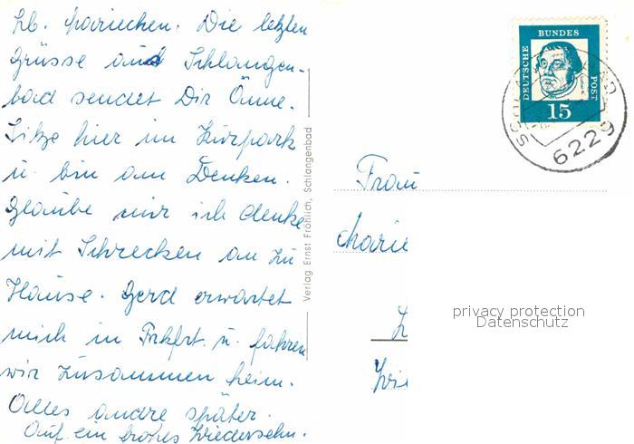 72710363 alte Postkarte Schlangenbad Taunus Kurgarten Sanatorium Roemerbad Nassauer-Allee Thermalbad Kurhotel postalisch gelaufen Erhaltung siehe scans [LiesaD40] KatCode: 11110006439014