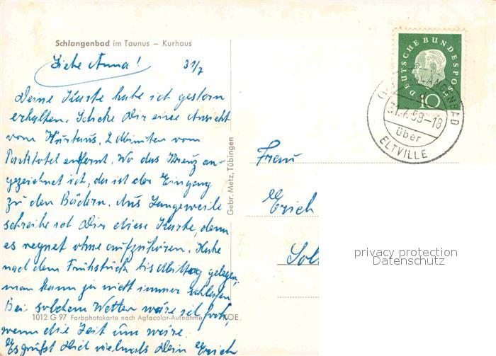 72741214 alte Postkarte Schlangenbad Taunus Kurhaus postalisch gelaufen Erhaltung siehe scans [FriedD77] KatCode: 11110006439014
