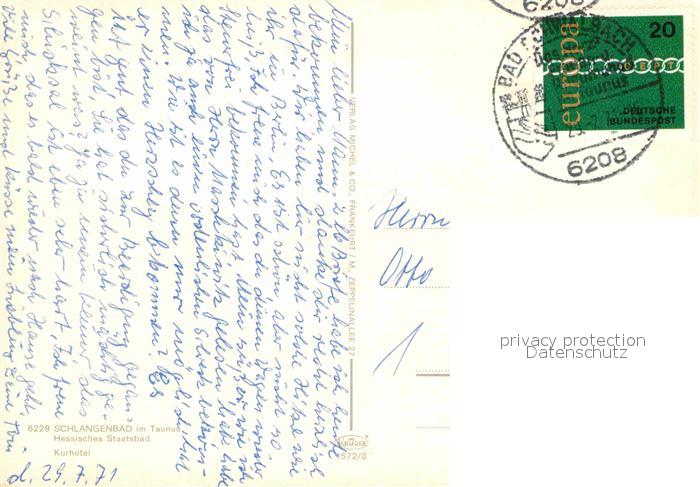 72843743 alte Postkarte Schlangenbad Taunus Kurhotel postalisch gelaufen Erhaltung siehe scans [PaolaD17] KatCode: 11110006439014