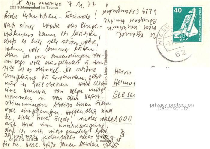 72993767 alte Postkarte Schlangenbad Taunus Kurzentrum postalisch gelaufen Erhaltung siehe scans [AndreD76] KatCode: 11110006439014