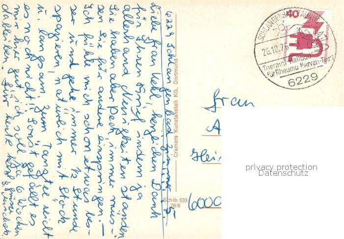 73673052 alte Postkarte Schlangenbad Taunus Medizinische Klinik Roemerbad Hallenbad Speisesaal Zimmer postalisch gelaufen Erhaltung siehe scans [WerneD78] KatCode: 11110006439014