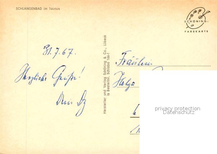 73209598 alte Postkarte Schlangenbad Taunus Ortsansicht postalisch gelaufen Erhaltung siehe scans [WerneD78] KatCode: 11110006439014
