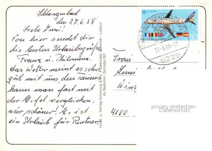72742250 alte Postkarte Schlangenbad Taunus Panorama Kurhotel Thermalschwimmbad Muehlstrasse Wappen postalisch gelaufen Erhaltung siehe scans [FriedD77] KatCode: 11110006439014
