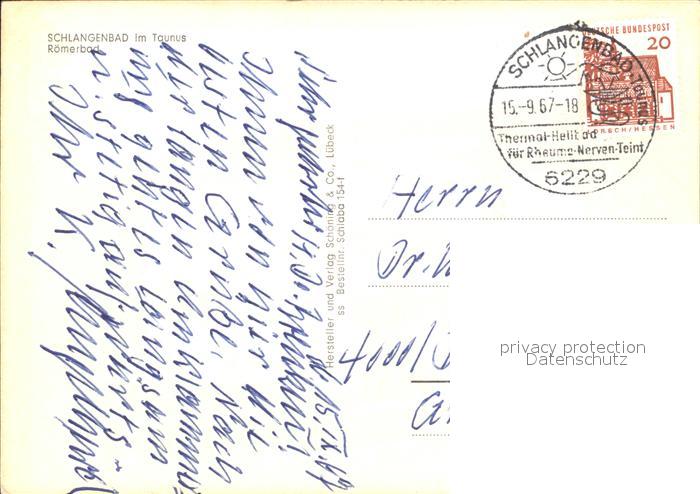 alte Postkarte Schlangenbad Taunus Roemerbad postalisch gelaufen Erhaltung siehe scans