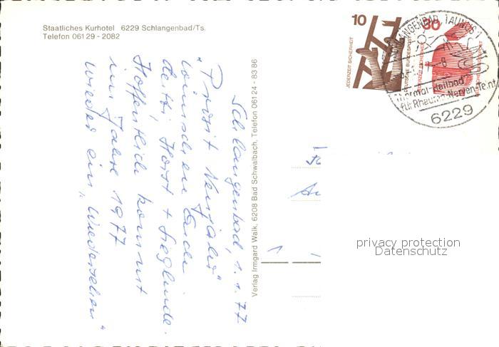 72125915 alte Postkarte Schlangenbad Taunus Staatl Kurhotel postalisch gelaufen Erhaltung siehe scans KatCode: 11110006439014